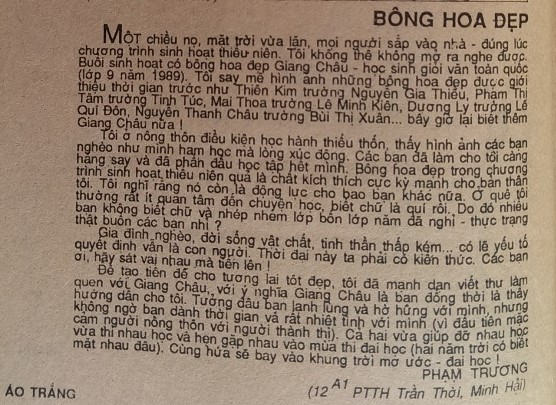 (Bài viết trên báo Áo Trắng năm 1990- trang 10)